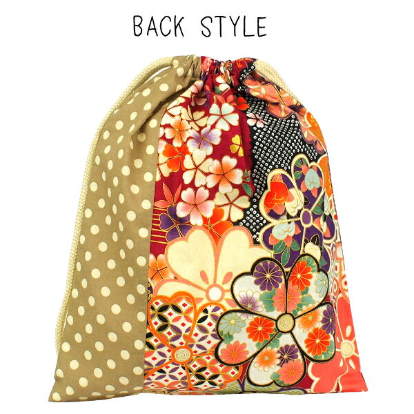 ・和服の際の巾着として・小物や化粧品を入れるポーチに ■商品サイズ幅 約28cm×高さ 約34cm ■素材綿100% ■ご注意販売商品は【鹿の子桜×ベージュベース 巾着(大)】のみです。