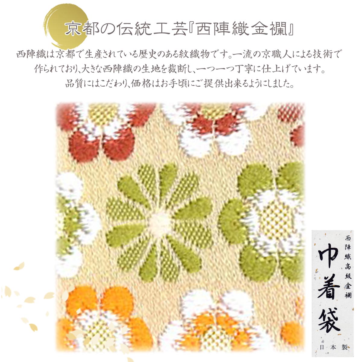 日本製(京都) 商品説明 江戸時代より引き継がれてきた、京都の伝統工芸 西陣織高級金襴を使用し、一流の京職人による手作りの商品です。