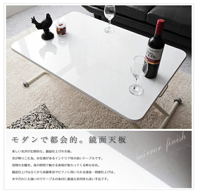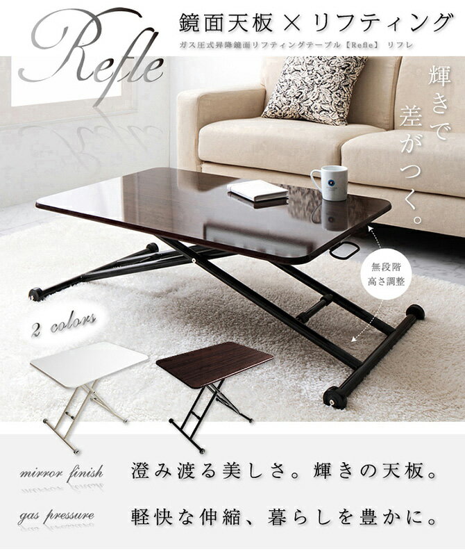 ガス圧昇降式テーブル ガス圧式昇降鏡面リフティングテーブル Refle リフレ 鏡面仕上げ ホワイト ブラウン 鏡面天板 モダン おしゃれ 昇降式テーブル テーブル ダイニングテーブル センターテーブル ローテーブル 送料無料