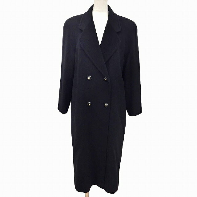 【中古】レオナール LEONARD コート チェスター ロング カシミヤ100 ダブル 9AR 黒 ブラック レディース 【ベクトル 古着】 190711 ベクトルプレミアム店